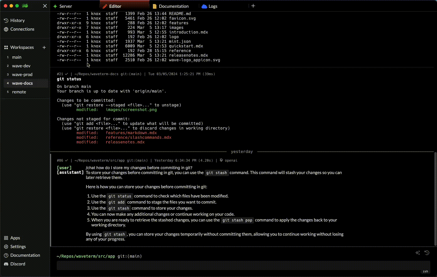 Wave enhances SSH by offering connections that stay alive across sessions, maintaining your environment and history, unlike traditional SSH that might disconnect and lacks universal command history. Setting up a Wave connection creates a resilient virtual SSH connection, preserving your session details and command logs.Security